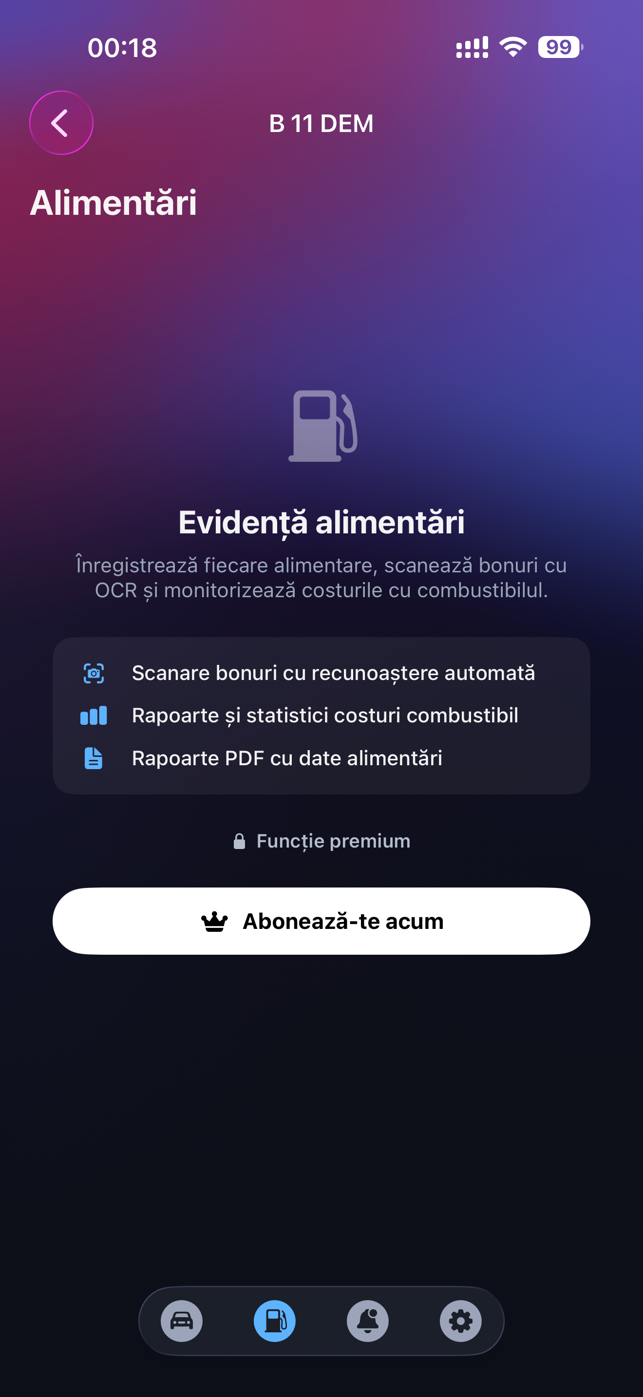 SubscriptionBannerForFeaturesView - banner care apare când utilizatorul fără abonament încearcă o funcționalitate premium.