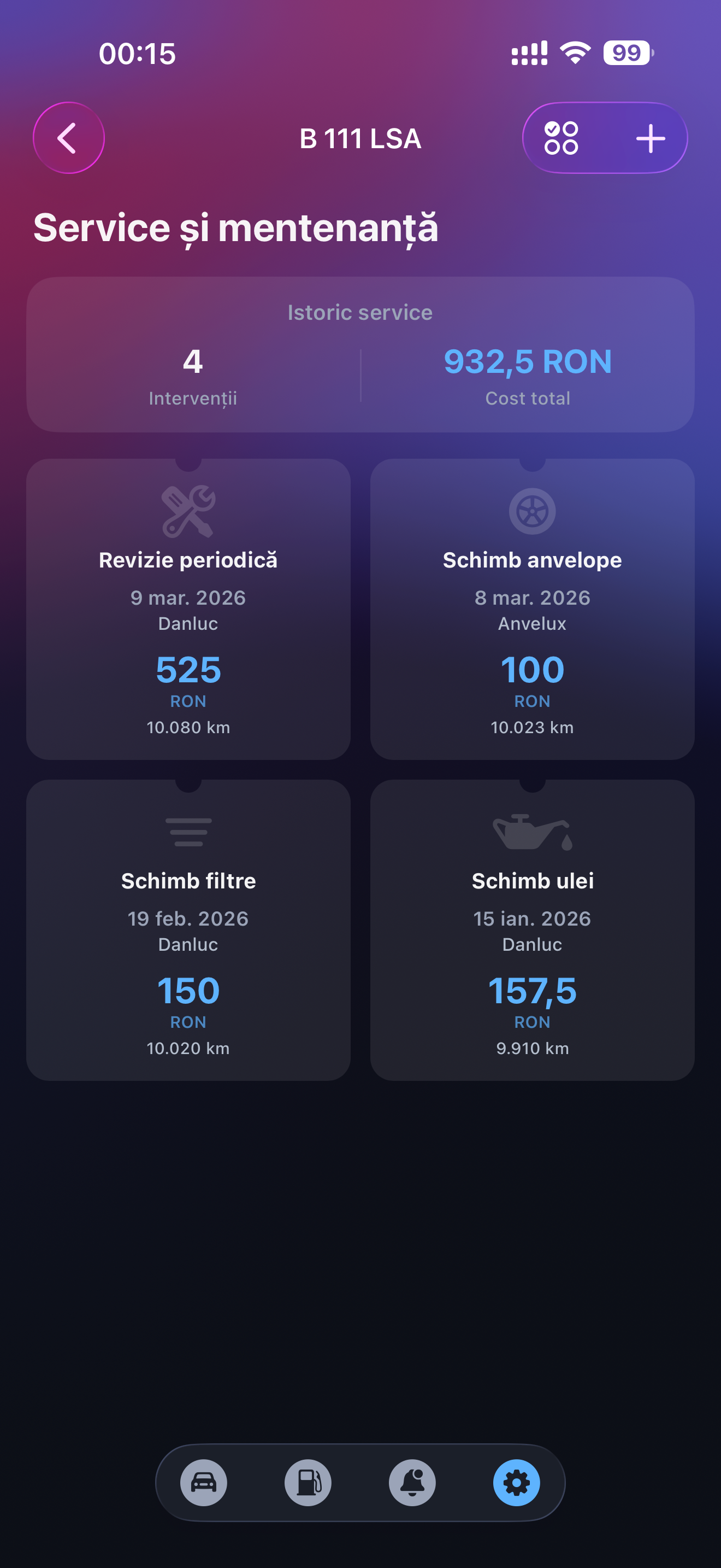 Rolog a crescut organic. Am adăugat funcționalități una câte una, alimentări, FAZ, alerte, service, GPS și fiecare a venit cu propriul ecran, propriile componente, propriul stil vizual. Rezultatul? O aplicație funcțională dar vizual fragmentată. Unele ecrane arătau a 2024, altele a 2026. Culorile nu vorbeau aceeași limbă. Cardurile aveau forme diferite fără un motiv clar. Navigația funcționa, dar nu simțeai nimic când o foloseai.