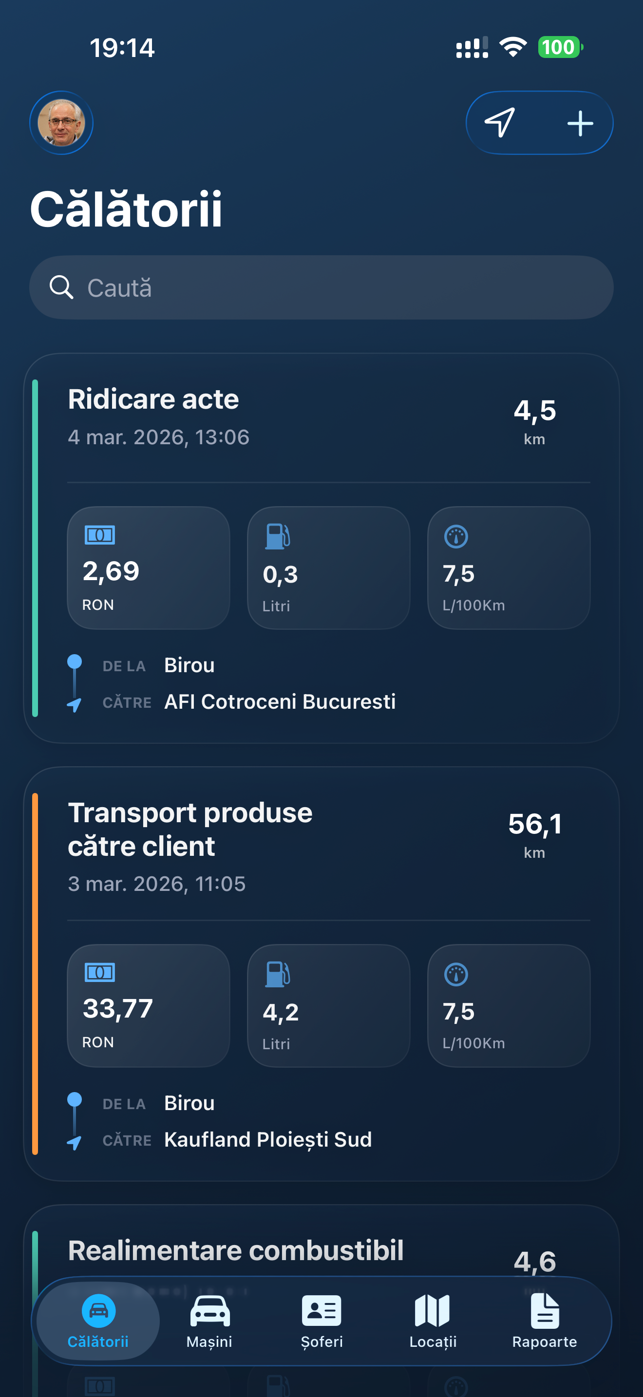 Aici am petrecut cel mai mult timp de design. Într-o aplicație de fleet management, cardurile sunt tot ce vezi. Lista de mașini, lista de alimentări, lista de service-uri, totul e carduri. Dacă cardurile sunt generice, aplicația e generică.